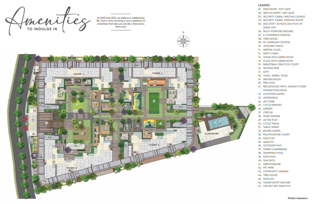 Residents of GHR Callisto enjoy an array of lifestyle amenities, including three swimming pools, a private movie theatre, co-working spaces, fitness zones, and a variety of indoor and outdoor sports facilities. Each detail is designed to promote well-being, community, and convenience in daily life.